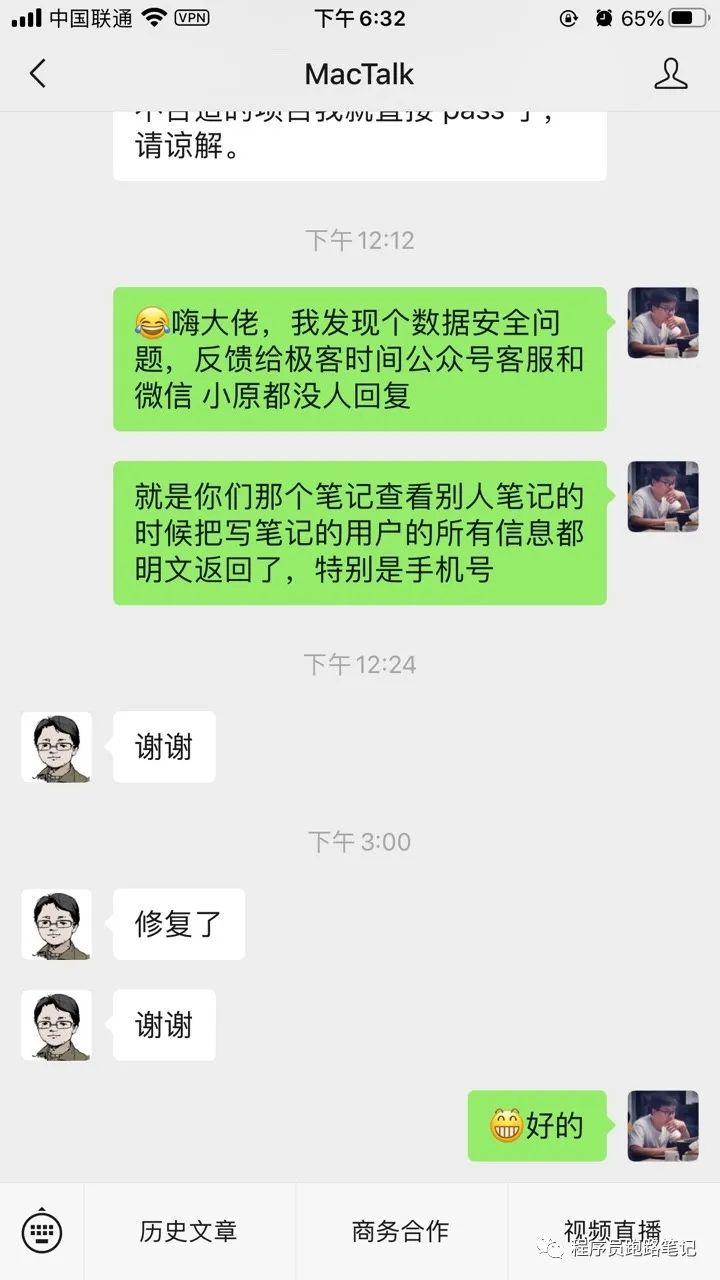 手机号直接明文返回来了,直呼好家伙。我也第一时间反馈给他们公众号的运营人员。没人搭理我,也不知道他们接不接受安全信息的反馈,我就反馈给迟建强老板的公众号了