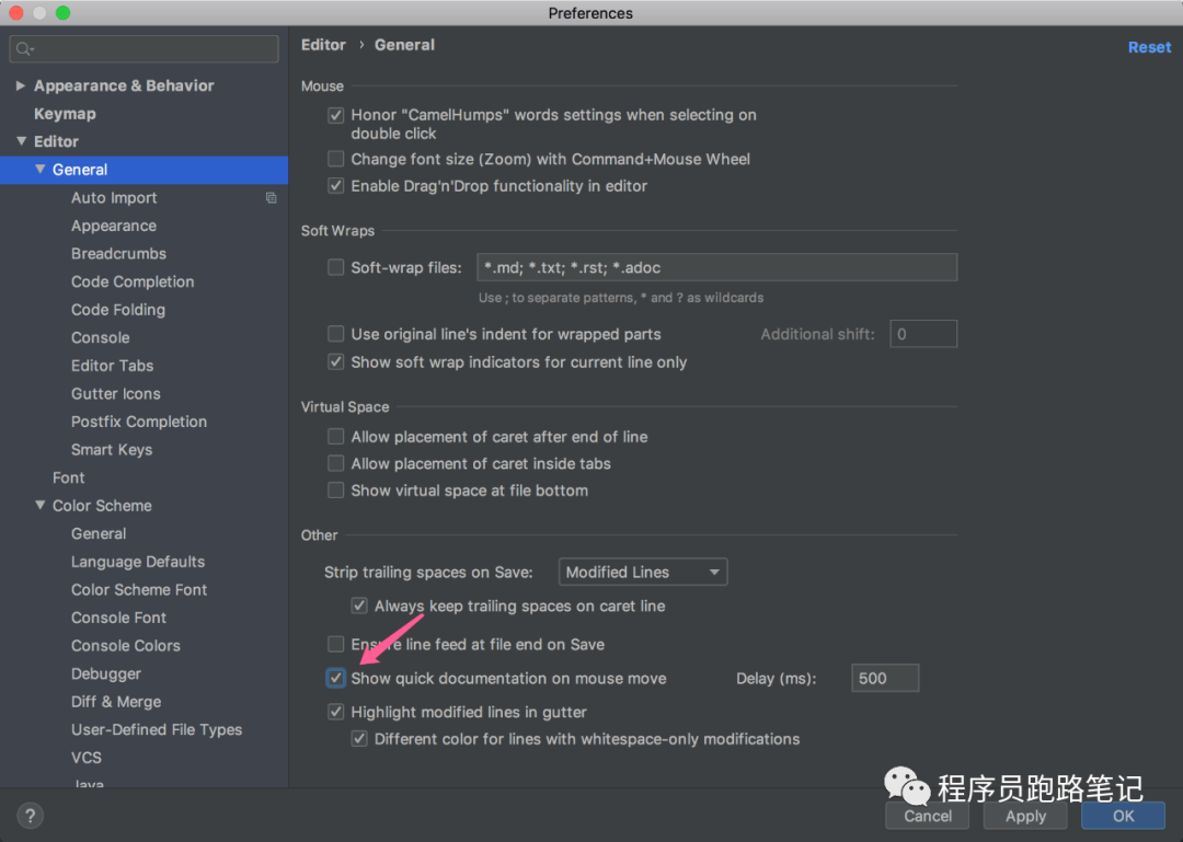 还可以配置鼠标 hover 延时 x ms 之后自动显示,通过如下方式配置,这样鼠标 hover 在某个方法的时候就会自动弹层显示文档里。