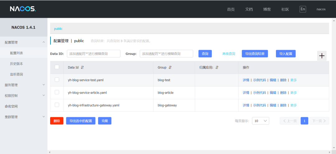 Group : blog-gateway 【与本地配置中的 group 对应】