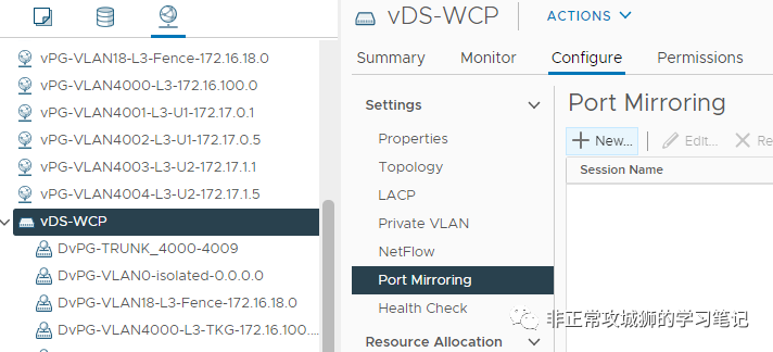 这种不经过ESXi的上联VMNIC,也就是不经由物理交换机进行转发的流量,无法用传统的端口镜像方式进行抓包分析。那么就需要使用vDS的端口镜像功能了。