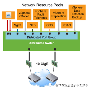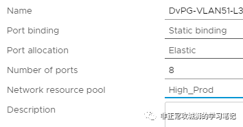 完成资源池的划分后,接下来需要将对应的分布式交换机端口组DvPG关联到这些网络资源池,就可以实现更为精确的网络IO控制。比如下图所示的端口组: