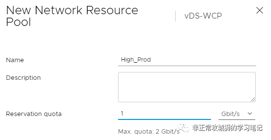 这是一种类似“总体规划”的NIOC策略,在实际的项目中,管理员会进一步定义各类不同的“网络资源池”。用以应对出现资源竞争时,不同优先级虚拟机占比网络带宽的要求。记得在晓冬考VCAP-DCV-Deploy认证的时候,有一道实验题大意上是这样描述的:用户的生产和测试用户都运行在同一个群集上,要求考生通过网络策略,为总体业务流量预留500Mbps的带宽,当出现资源竞争的时候,生产业务可以保证有50%的可用带宽,测试业务有20%的可用带宽.......配置的方法也很简单。对于这个vDS来说,由于各台服务器合计有10个网络适配器上联,因此总预留带宽是200Mbps*10=2Gbps。既然要预留50%的可用带宽,那么就需要预留1Gbps提供给High优先级的端口组使用(即生产业务流量)。同样地,预留2Gbps*10%=200Mbps给Medium优先级的端口组使用(即测试业务流量)。