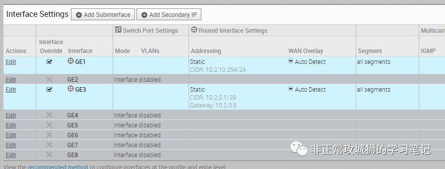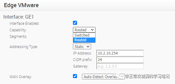 细心的朋友不难发现:启用路由协议的Edge设备接口都分配了唯一可用的IP地址,接口类型也区别于HQ站点的【Switched】,而是【Routed】。