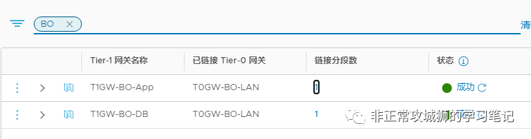 BO站点的这台Tier0网关下联2个Tier1网关,分别承载了BO站点的App中间件业务与DB后端数据库业务,我们需要将这些网络重分发到BGP。