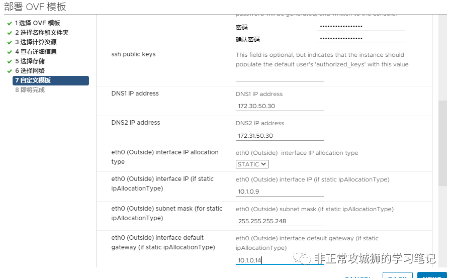 在我的Homelab环境中,GE1将连接到包括Web应用在内的LAN网络;GE3将上联到Internet网络。其中GE3的地址,将在OVA导入过程中被定义:10.1.0.17/29