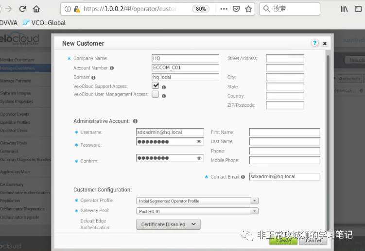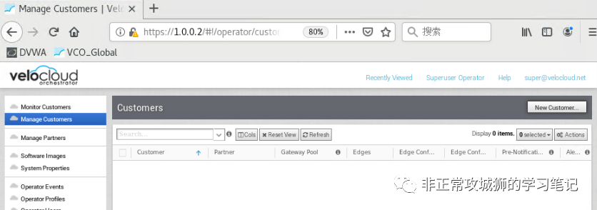 0x02.租户环境的创建通过全局操作管理员访问VCO管理界面,进入Manage Customers,点击New Customer,创建新的租户