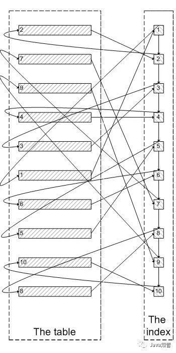肯定会有人问:既然一开始是利用索引的,为什么不先沿着索引叶子节点查询到最后需要的5个节点,然后再去聚簇索引中查询实际数据。这样只需要5次随机I/O,类似于下面图片的过程: