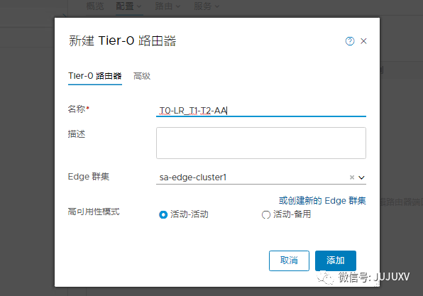 创建一个高可用性模式为AA的Tier0级别逻辑路由器