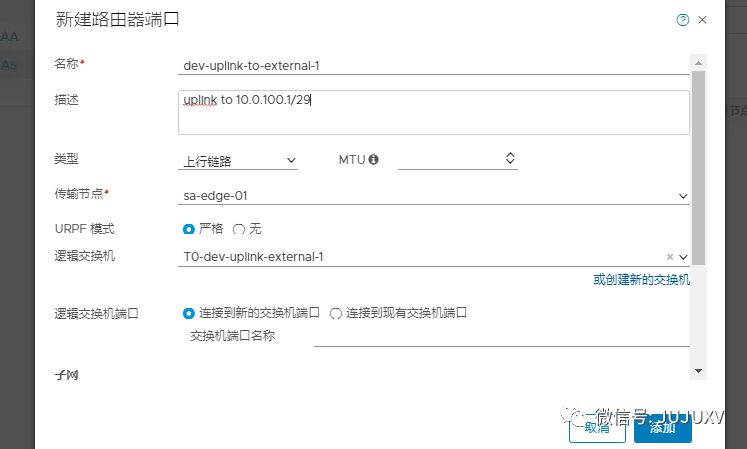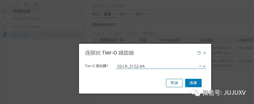 将Tier-1逻辑路由器连接到该Tier-0逻辑路由器