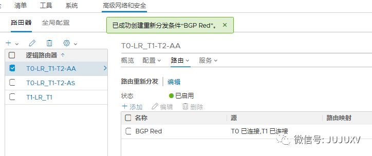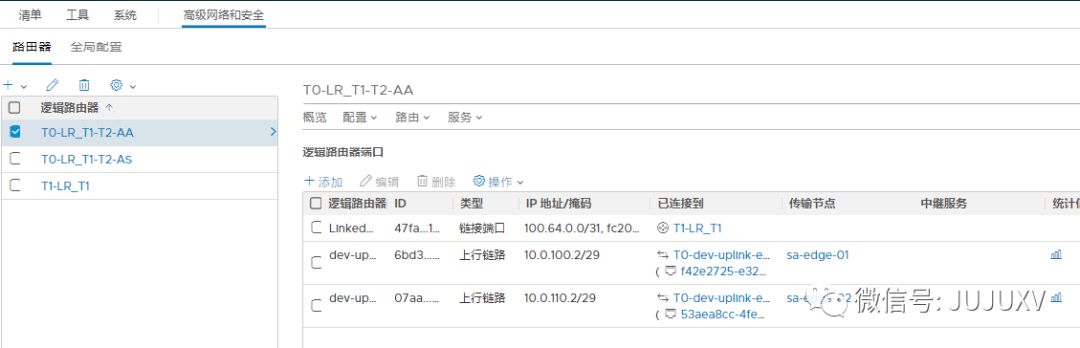可以看到,刚才新建的T0-LR_T1-T2-AA逻辑路由器的SR和DR角色均正常运行