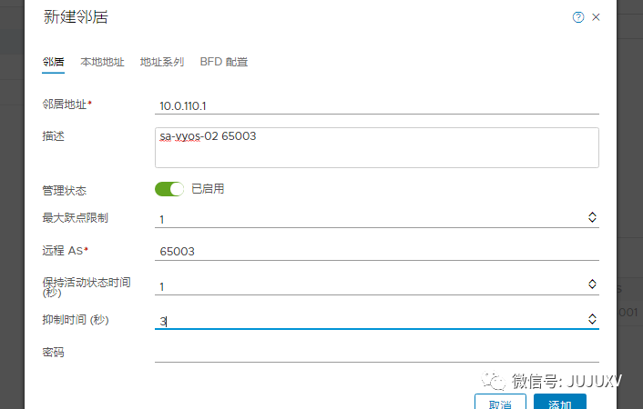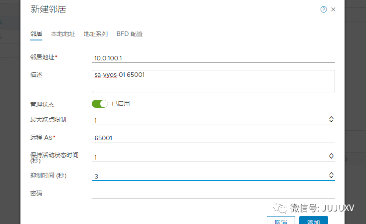 确认两个BGP邻居设置完毕