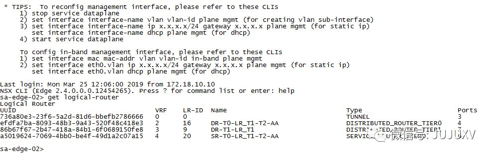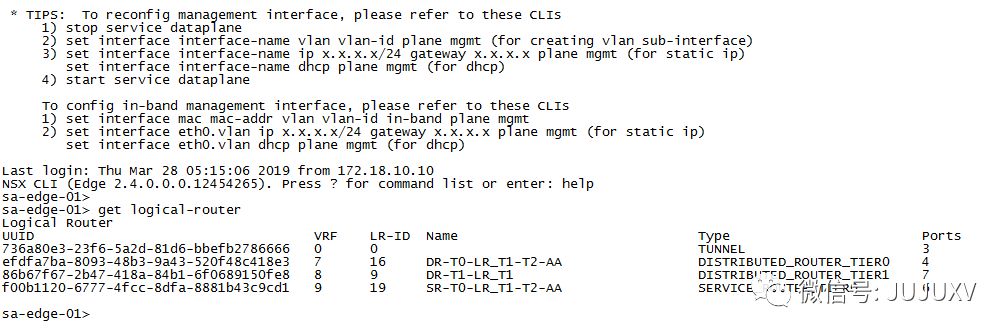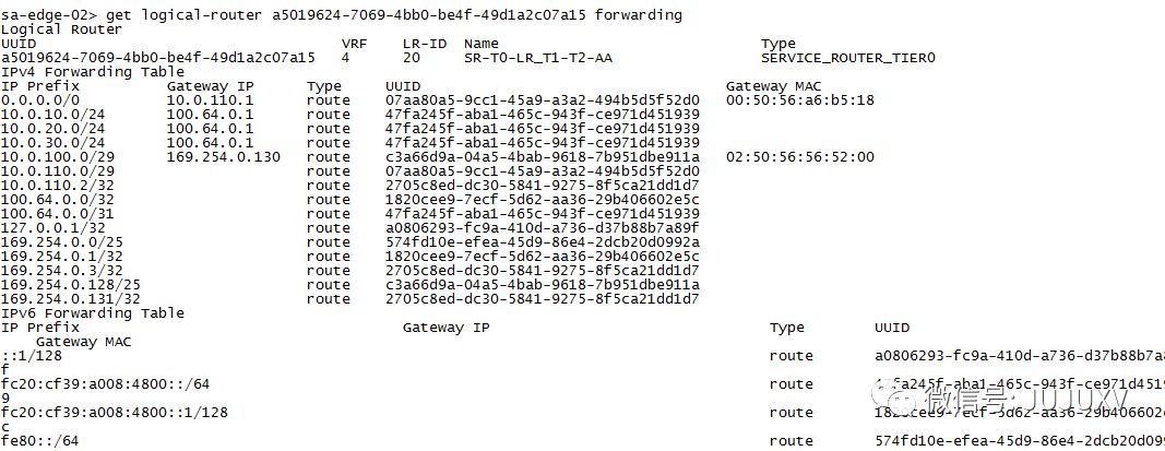 在其中一台Edge传输节点,使用命令查看逻辑路由器实例