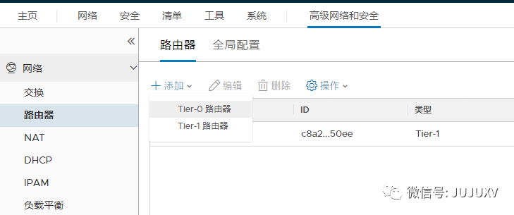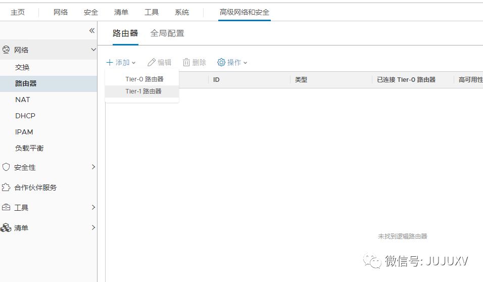 在高级网络和安全-网络-路由器界面,添加一个Tier-1路由器