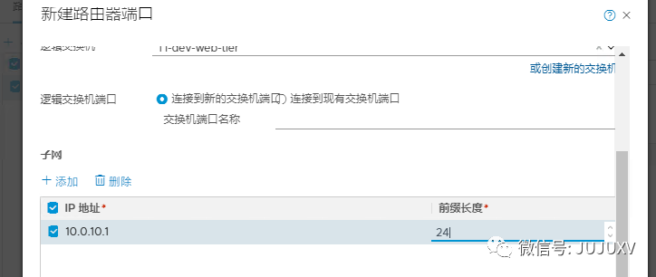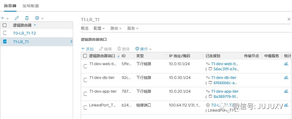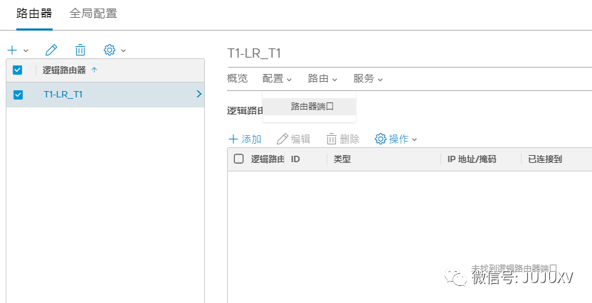 等待T1LR完成创建后,进入配置-路由器端口,添加内部接口