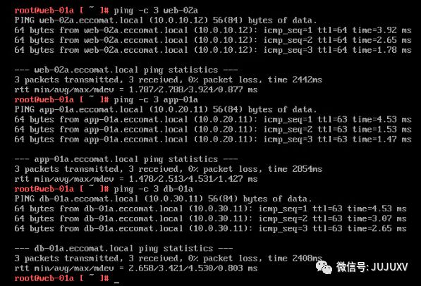 完成T1LR(T1DR)创建后,web-01a与其他网络的虚拟机,包括app-01a和db-01a三层通信已经可以正常建立
