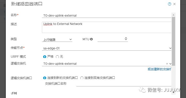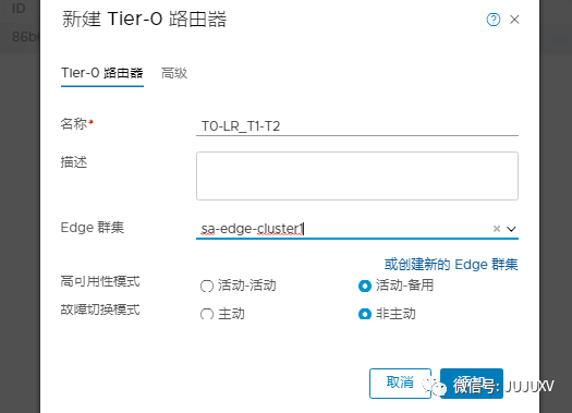 定义该路由器端口信息,实现T0LR到VLAN网络的互通,必须部署T0SR角色,因此必须要从Edge群集中指定一个Edge作为传输节点