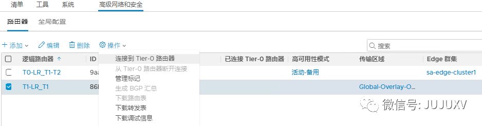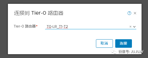 选择将T1-LR_T1连接到T0-LR_T1-T2,选中T1-LR_T1,点击操作-连接到Tier-0路由器即可