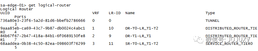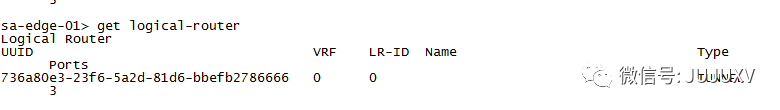 在完成T0LR的上联配置后,相当于部署了T0SR角色,因此在Edge节点,可以看到T1DR、T0DR和T0SR角色