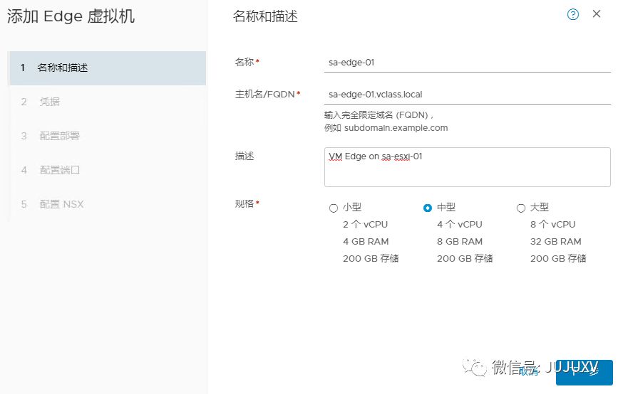 定义该Edge虚拟机的FQDN和部署规模
