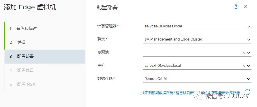 指定承载Edge虚拟机的ESXi服务器和数据存储