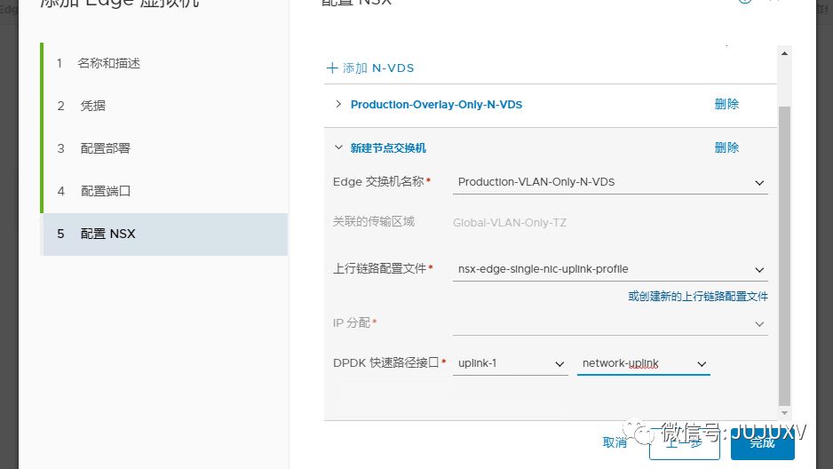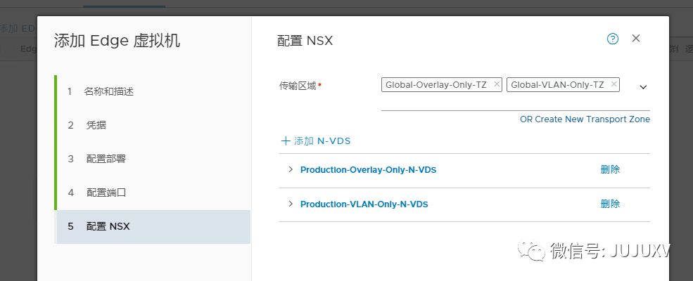 Edge需要同时访问Overlay网络和VLAN网络,因此一般需要连接到两个传输区域,配置两个N-VDS