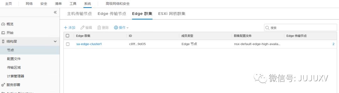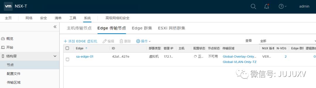 完成ESXI主机和虚拟网络的配置后,进入系统-结构层-Edge传输节点,添加Edge虚拟机