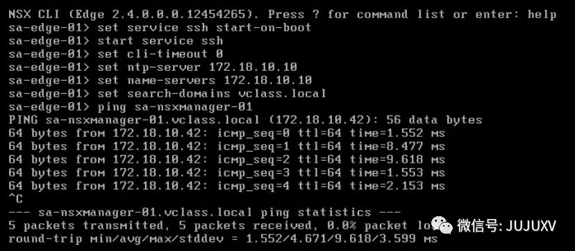 开启Edge虚拟机的SSH服务,并设置DNS、NTP和默认搜索空间