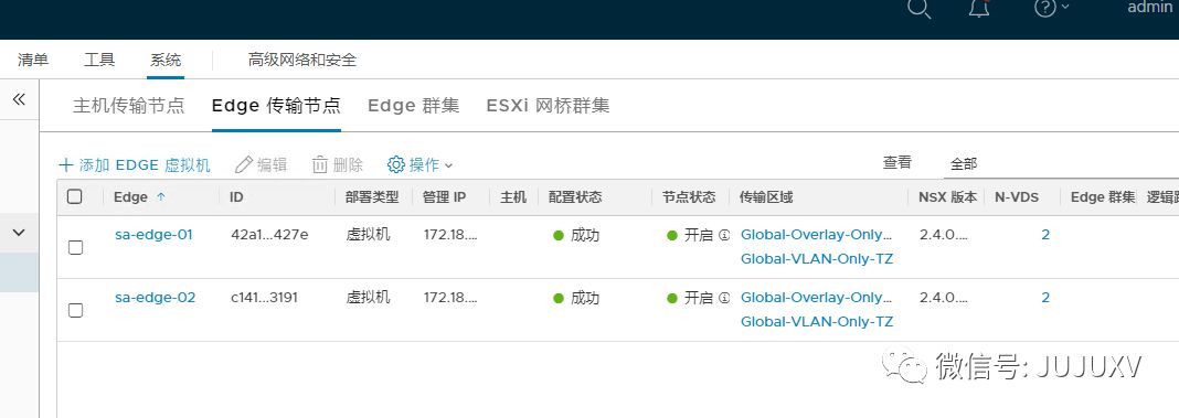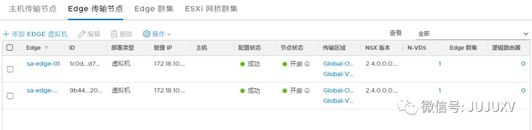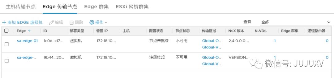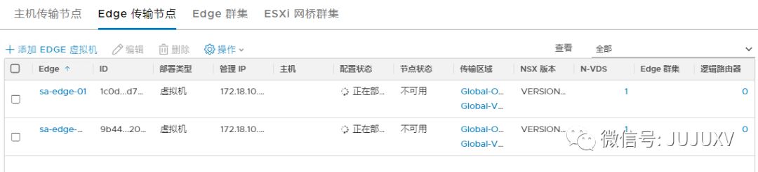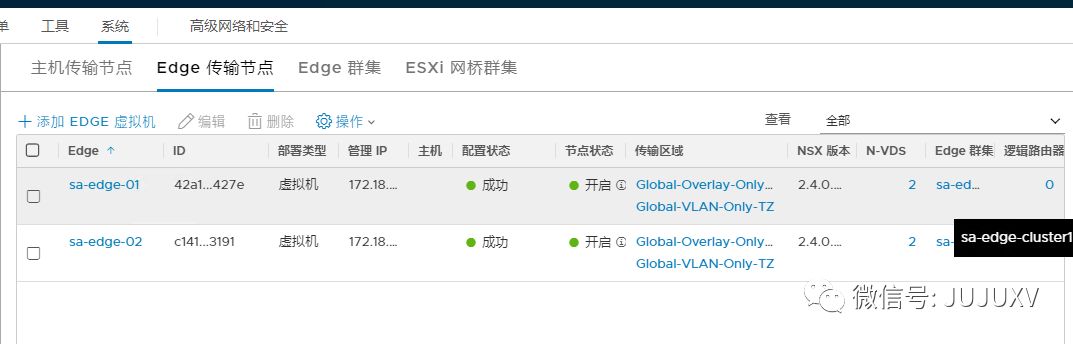 在创建Edge集群之前,首先保证至少有2台Edge传输节点已经正常配置