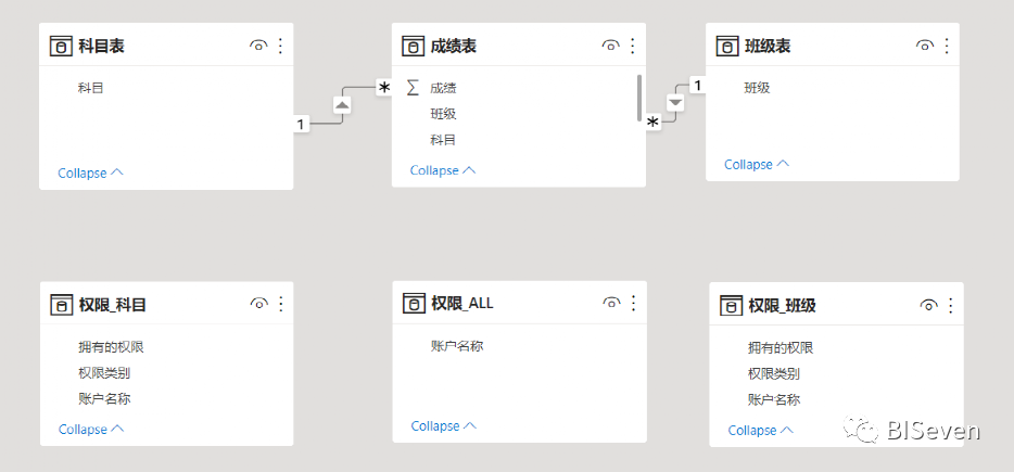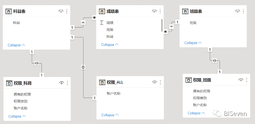 先看数据模型,权限表与维度表之间不再有关系,所以也就不必再开启双向安全筛选器