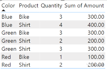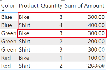 即它并不是仅仅以颜色作为筛选器筛选Sales表,实际上它是以【color, product, quantity】作为筛选器去筛选Sales表。