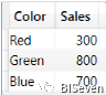 SUMMARIZE(Sales,Sales[Color],"Sales", SUM(Sales[Amount]))
