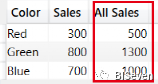 3. 计算新列All Sales,此时清除了Color中的筛选器,那么Sales表中的筛选器还包括:
