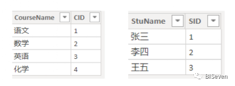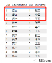 此时,对于每个科目都返回了与之对应的学生信息,张三同学学习了科目2数学,Generate函数在Course表生成了行上下文,而CalCulateTable函数将行上下文转换成筛选上下文,Course表中的每一行都不再和Stu的所有行进行相乘,而仅仅与对应行进行相乘了。