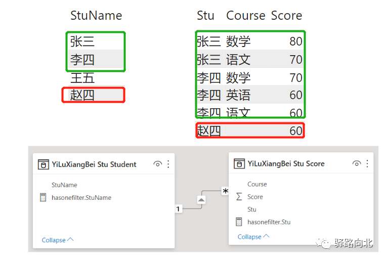 hasonefilter.StuName = HASONEFILTER('YiLuXiangBei Stu Student'[StuName])