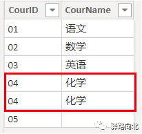 3. CourID 为 04 的有2行重复值