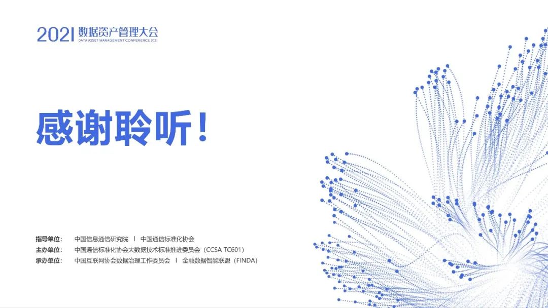 12月20日,“云上2021数据资产管理大会”在线上正式举行。本次大会由中国信息通信研究院、中国通信标准化协会指导,中国通信标准化协会大数据技术标准推进委员会主办,中国互联网协会数据治理工作委员会、金融数据智能联盟承办。大会旨在推动数据要素市场化,加强行业间数据资产管理经验交流,充分发挥数据资产的价值。