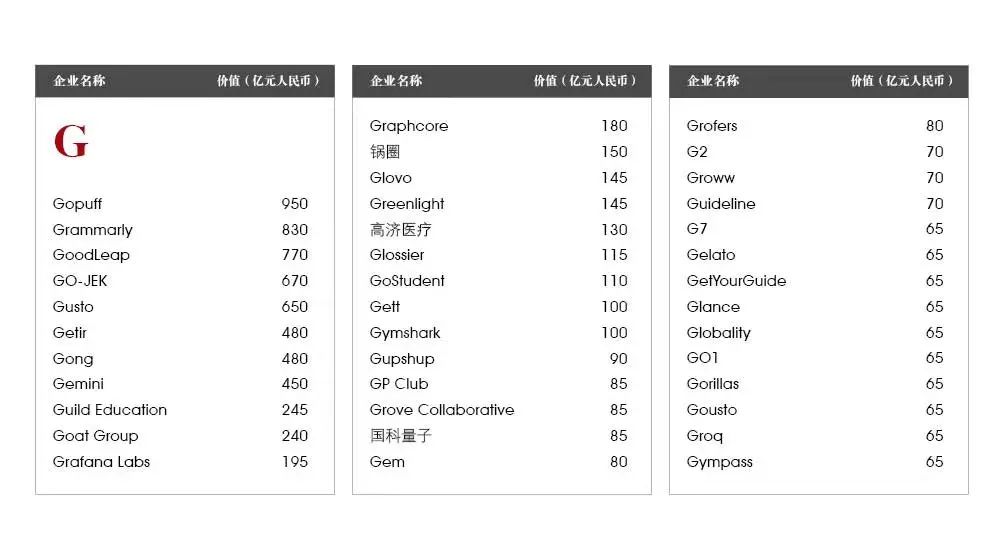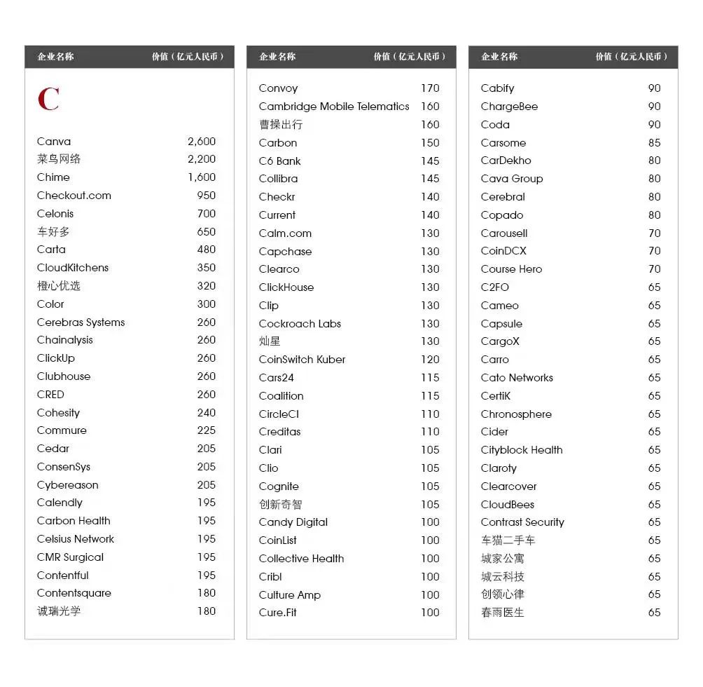 Canva:总部悉尼的在线平面设计平台Canva估值增长2400亿,达到2600亿元,排名上升102位至第六。在9月份的最新一轮融资中,Canva筹集了2亿美元。