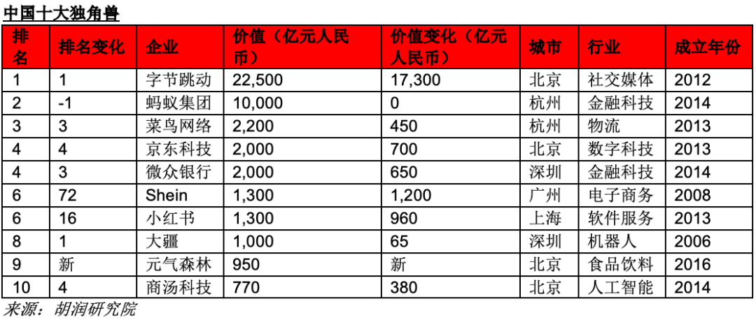 中国十大独角兽