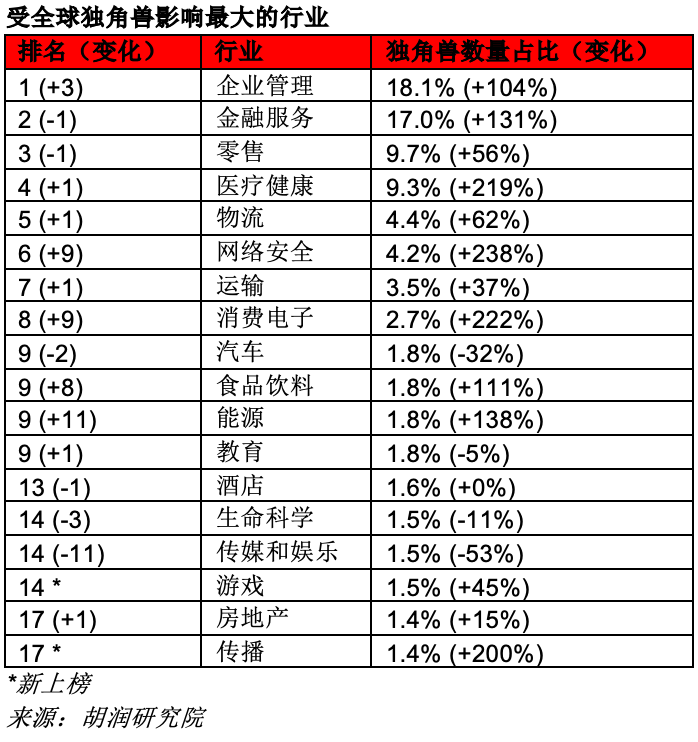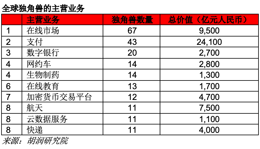 全球独角兽来自什么行业?