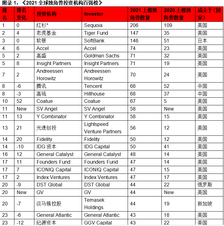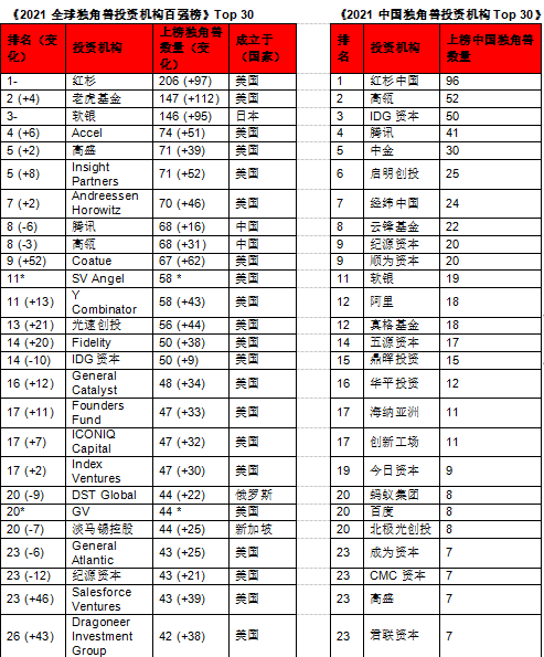 哪些投资机构最擅长捕捉独角兽?