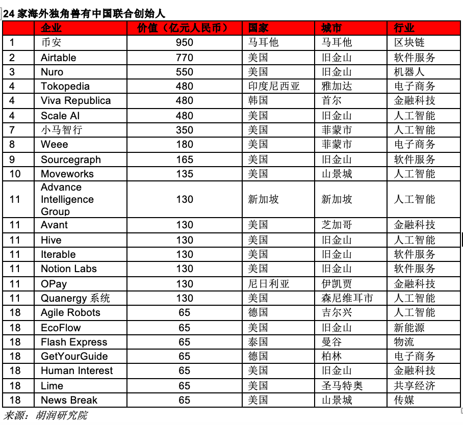 24家海外独角兽有中国联合创始人