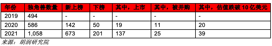 39家去年的独角兽公司估值跌破10亿美元而退出榜单。中国最多,31家,其次是美国5家,印度2家,英国1家。