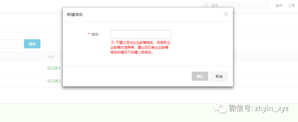 (2)输入发信域名,自定义前缀加上域名,点击确定