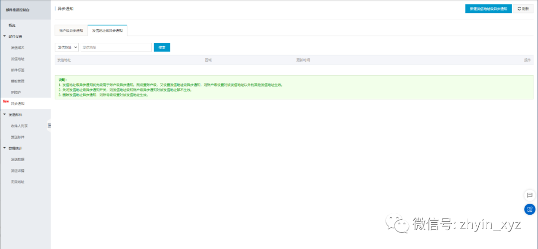 1.选择发信地址级异步通知,点击新建发信地址级异步通知