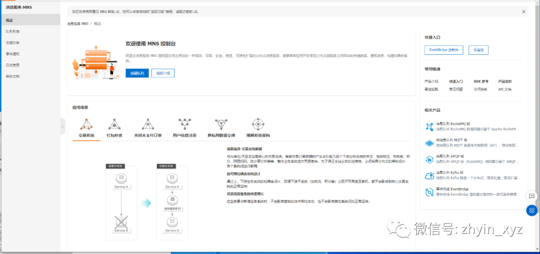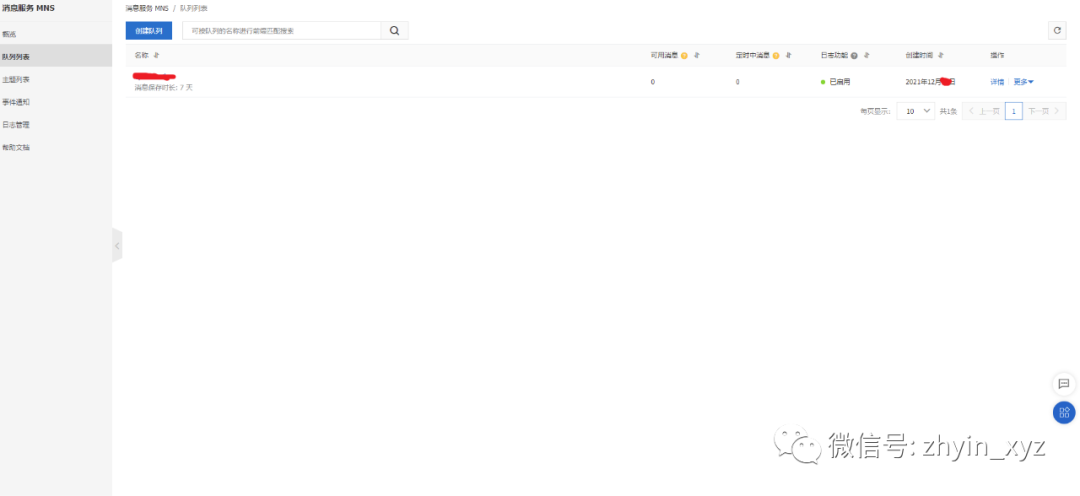 (3)上一步创建完成后会自动创建一个主题和队列,对应事件规则触发后会有消息推送到主题中,每到一个小时会推送到队列中。