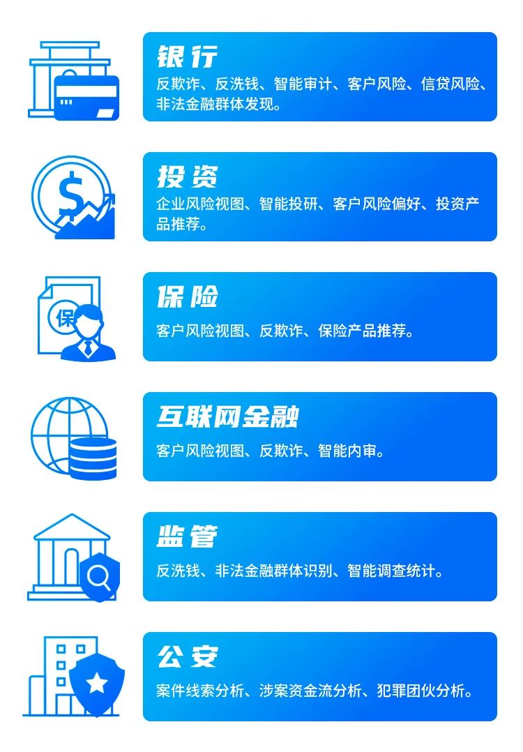FASGraphDB可灵活应用于授信审批、贷后监控、异常交易监控、反欺诈、反洗钱、客户推荐等多方面场景。