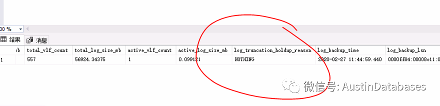 以我现在所在的数据库AWO,log_truncation_holdup_reason的原因是log_backup, 那我们就去做log_transaction的backup 看看问题是否能解决