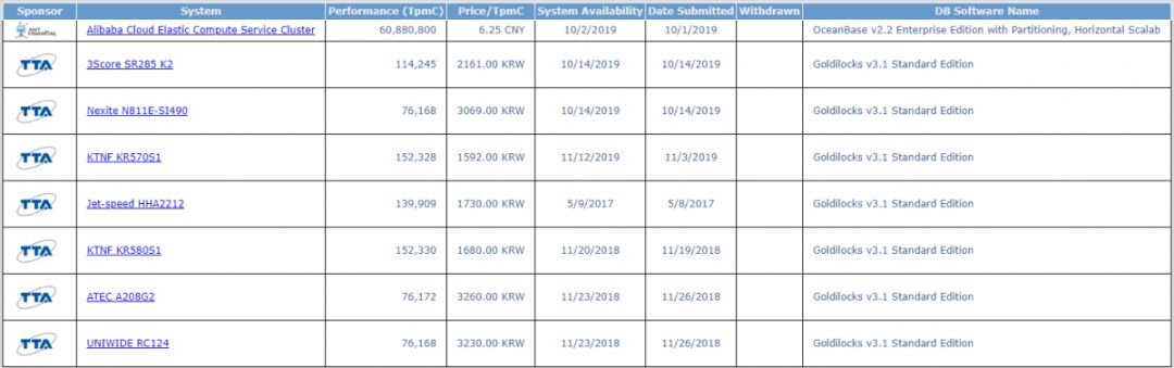 即测试系统的整体价格与流量指标的比值,在获得相同的tpmC值的情况下,价格越低越好。