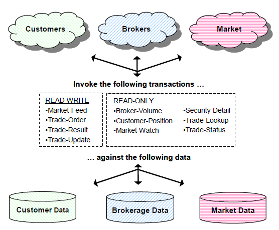 TPC-E是以美国纽约证券交易所为模型,该测试模拟了一系列后端处理数据以及证券公司前端客户在股票交易市场的典型行为:账户查询、在线交易和市场调研。