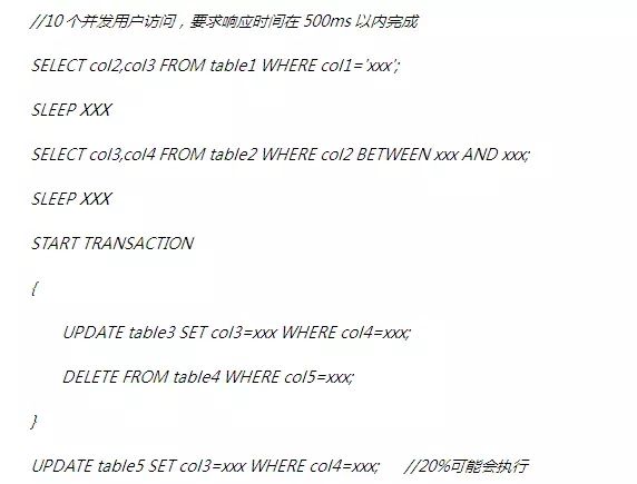 有了上述概览的表格后,针对每一种业务操作,可细化其操作。最终将其抽象成SQL语句及对应的访问特征。其伪代码可描述为